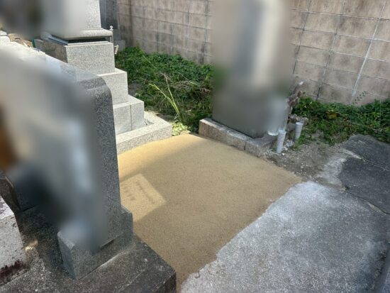 本日、愛知県名古屋市にありますみどりヶ丘公園墓地にてお墓じまいの工事をさせていただきました。新しい砂をいれて更地にいたしました。ありがとうございました。